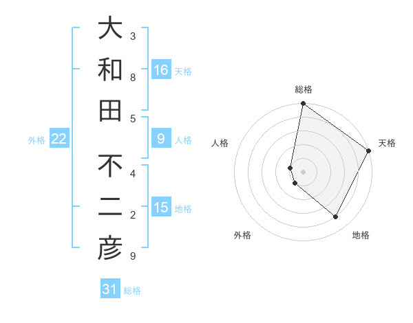 大和田 不二彦さんを姓名の画数から五運を鑑定