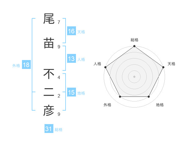 尾苗 不二彦さんの天格は16画の5点!