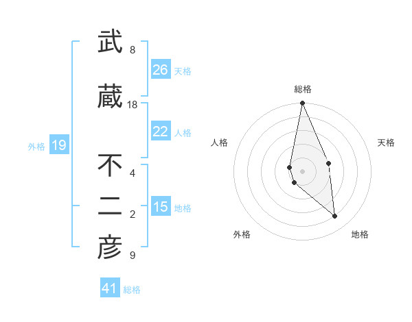 武蔵 不二彦さんを姓名の画数から五運を鑑定