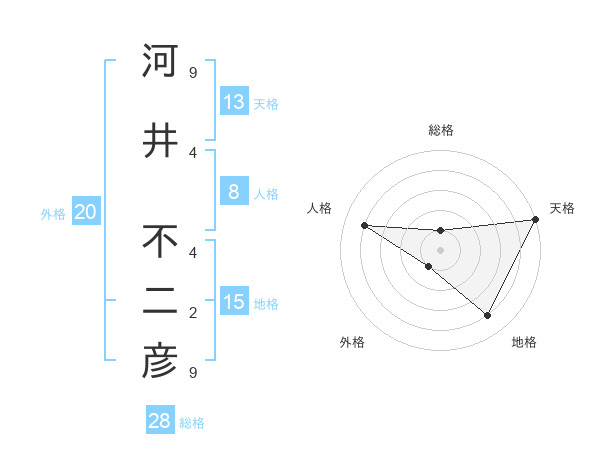 河井 不二彦さんの総格は28画の1点!
