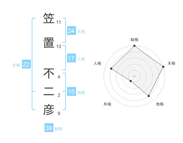 笠置 不二彦さんを姓名の画数から五運を鑑定