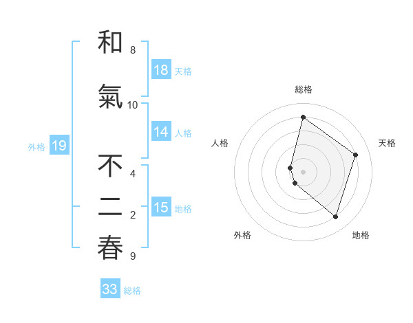 和氣 不二春さんを姓名の画数から五運を鑑定