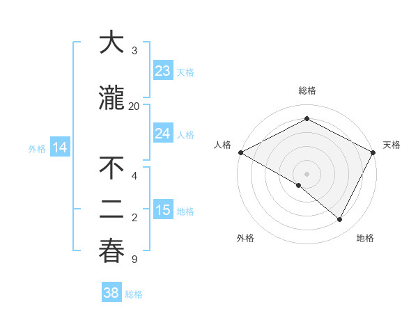 大瀧 不二春さんの総格は38画の4点!