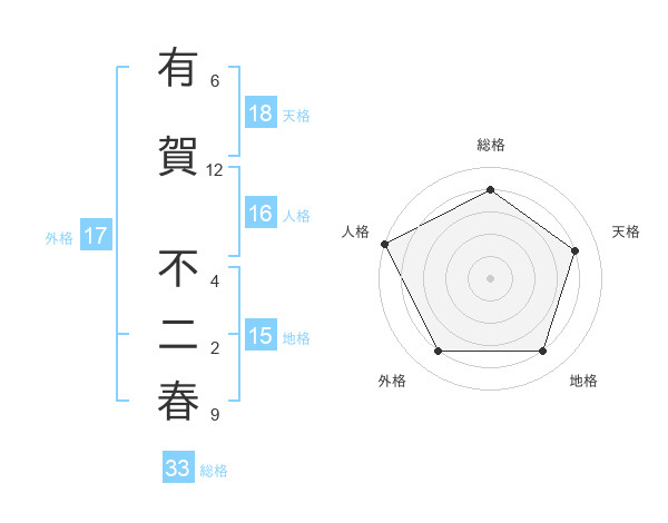 有賀 不二春さんを姓名の画数から五運を鑑定