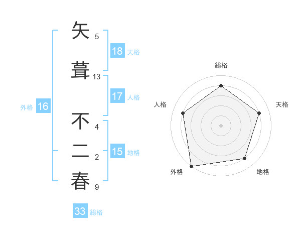矢葺 不二春さんを姓名の画数から五運を鑑定