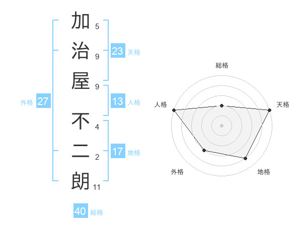 加治屋 不二朗さんを姓名の画数から五運を鑑定