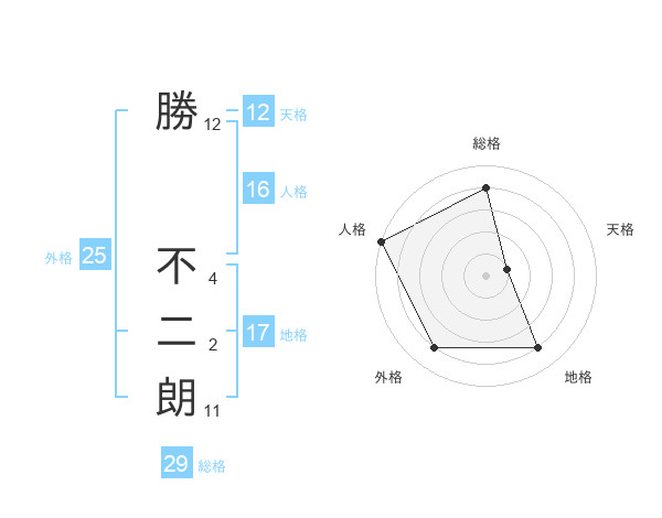 勝 不二朗さんを姓名の画数から五運を鑑定