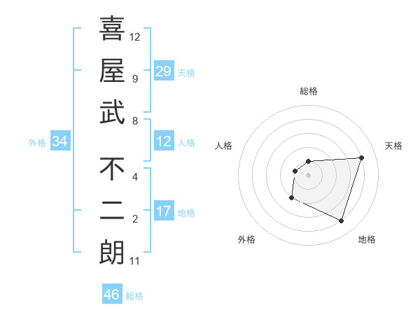 喜屋武 不二朗さんを姓名の画数から五運を鑑定