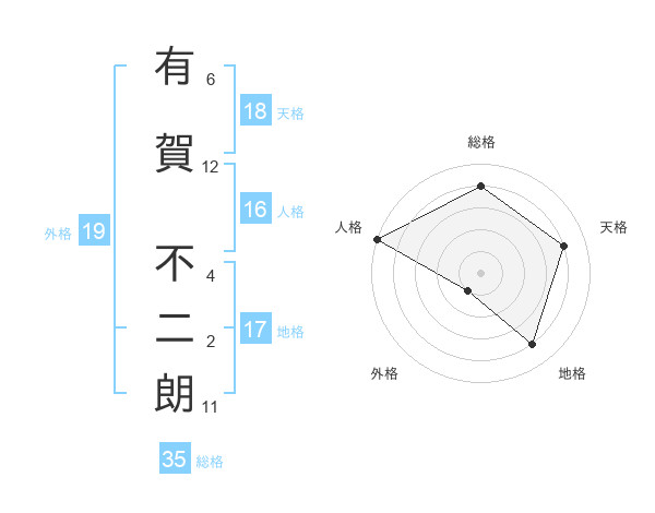 有賀 不二朗さんの総格は35画の4点!