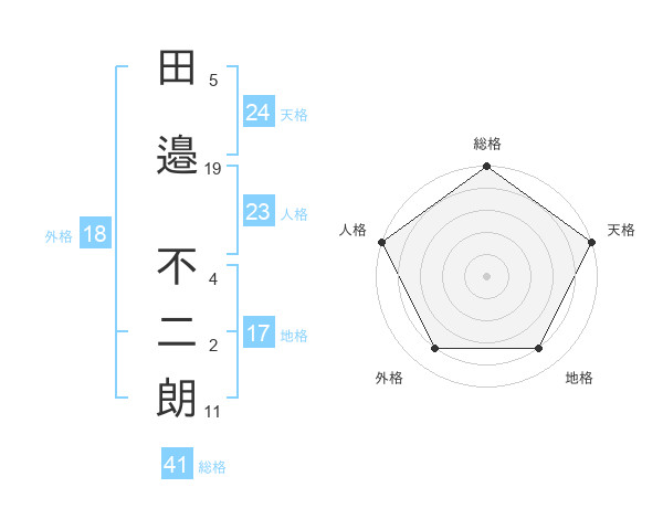 田邉 不二朗さんの総格は41画の5点!