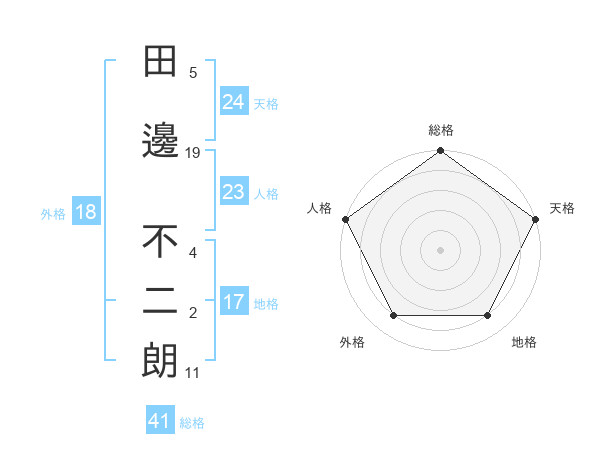 田邊 不二朗さんを姓名の画数から五運を鑑定