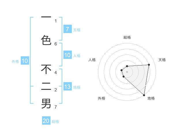 占い結果は姓名判断である以上、良い場合も悪い場合もありますが、決してお名前を誹謗中傷するものでなく、画数の自動計算によって得られたものです。また、本サイトの検索によって得られた鑑定結果で、第三者を誹謗中傷したり名誉を棄損するような行為を禁じます。