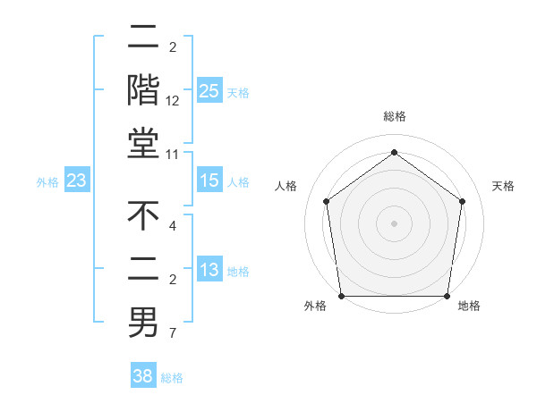 二階堂 不二男さんを姓名の画数から五運を鑑定