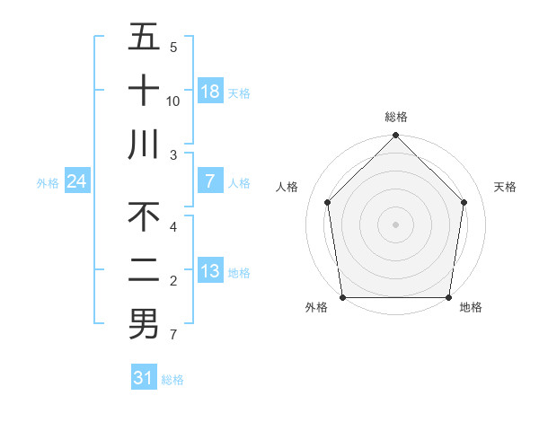 五十川 不二男さんを姓名の画数から五運を鑑定
