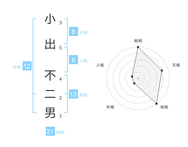 小出 不二男さんの総格は21画の5点!