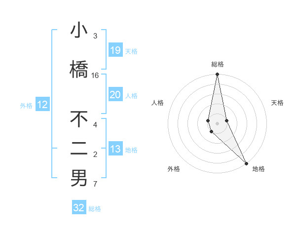 小橋 不二男さんを姓名の画数から五運を鑑定