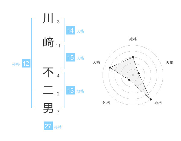 川﨑 不二男さんの総格は27画の3点!