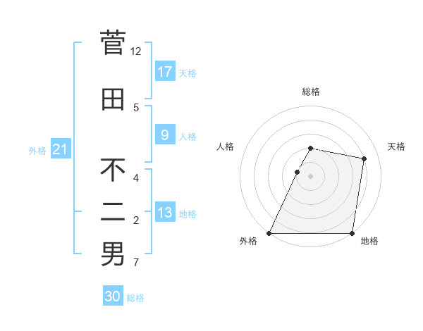 菅田 不二男さんを姓名の画数から五運を鑑定