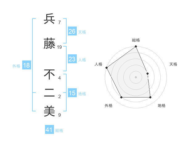 兵藤 不二美さんの総格は41画の5点!