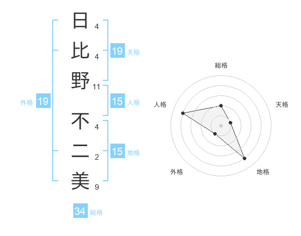 日比野 不二美さんを姓名の画数から五運を鑑定