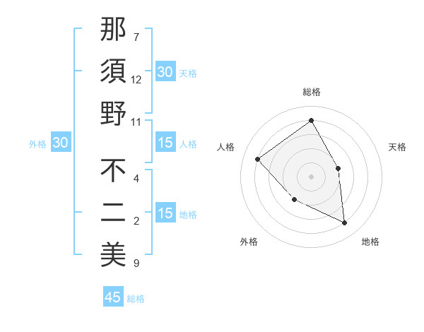 那須野 不二美さんを姓名の画数から五運を鑑定