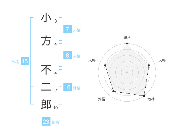小方 不二郎さんの総格は23画の5点!