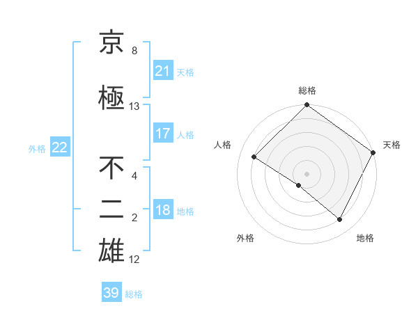 京極 不二雄さんを姓名の画数から五運を鑑定