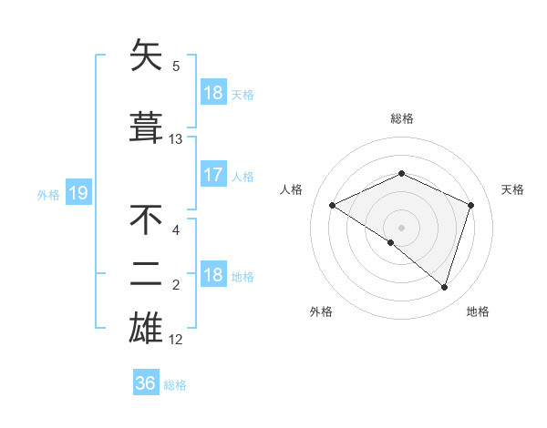 矢葺 不二雄さんを姓名の画数から五運を鑑定