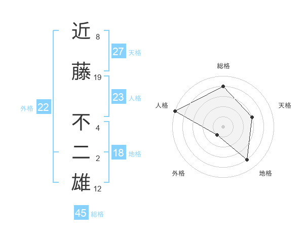 近藤 不二雄さんを姓名の画数から五運を鑑定