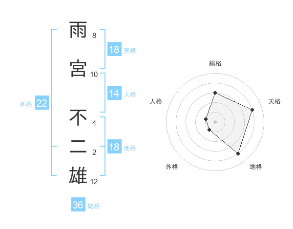 雨宮 不二雄さんを姓名の画数から五運を鑑定