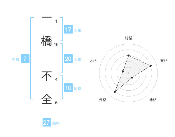 一橋 不全さんの外格は7画の4点!