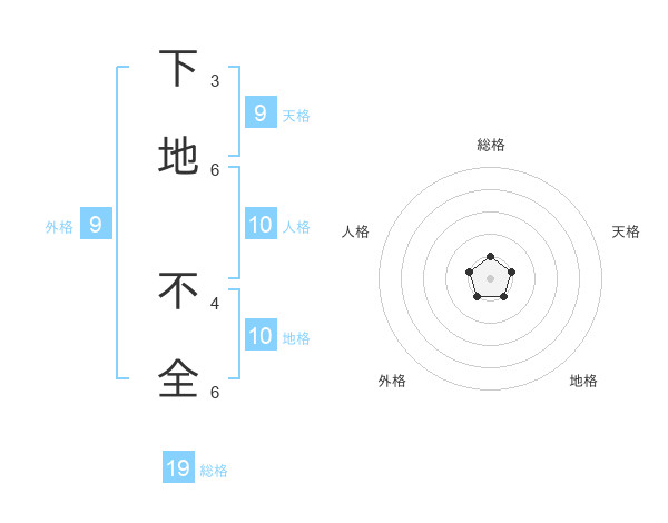 下地 不全さんを姓名の画数から五運を鑑定