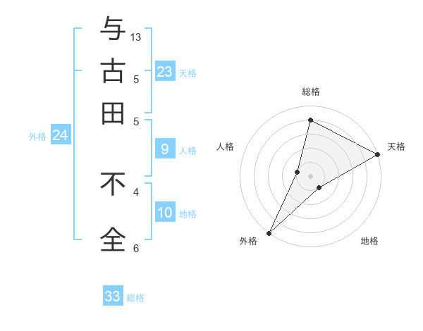 与古田 不全さんの天格は23画の5点!