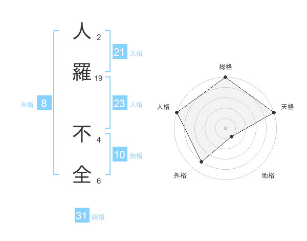 人羅 不全さんの総格は31画の5点!