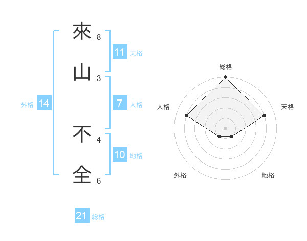 來山 不全さんの総格は21画の5点!