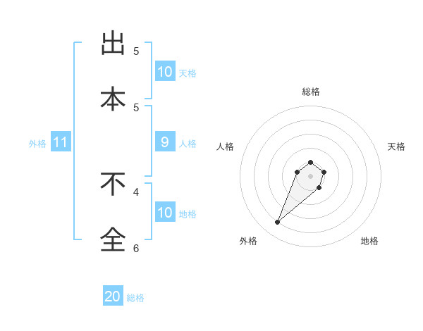 出本 不全さんの総格は20画の1点!