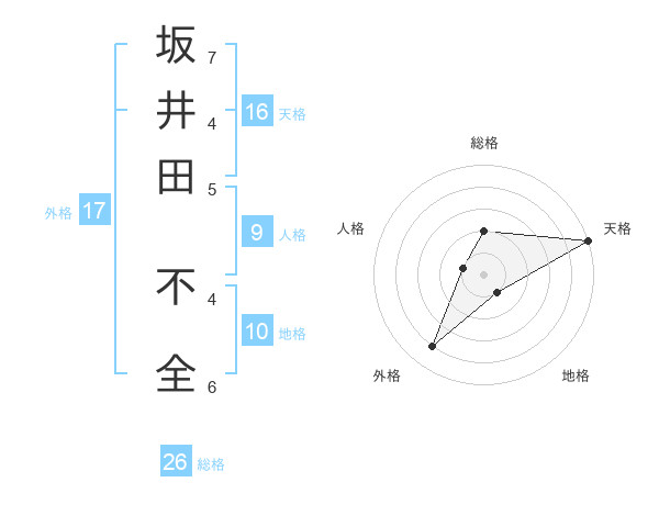 坂井田 不全さんを姓名の画数から五運を鑑定