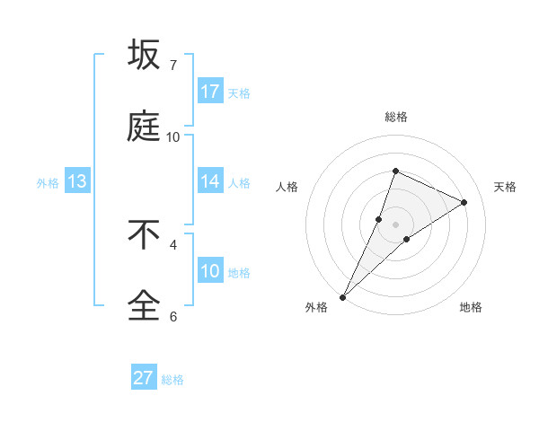 坂庭 不全さんを姓名の画数から五運を鑑定