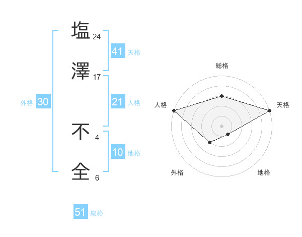 塩澤 不全さんを姓名の画数から五運を鑑定