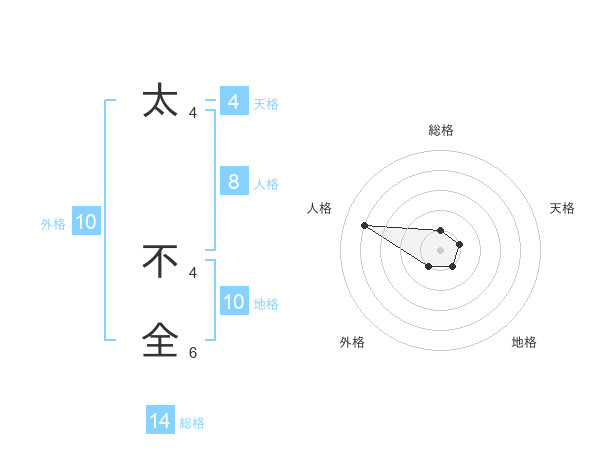 太 不全さんの総格は14画の1点!