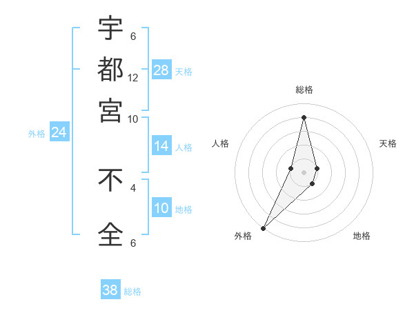 宇都宮 不全さんを姓名の画数から五運を鑑定