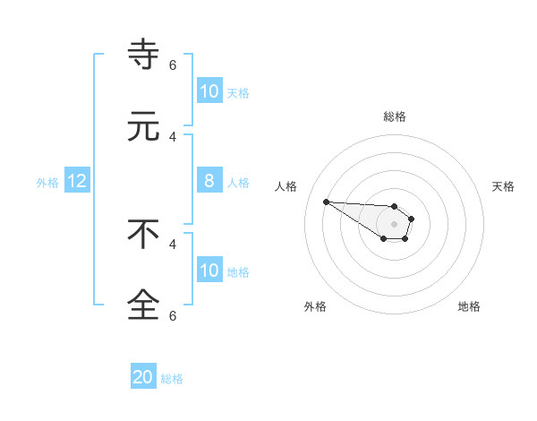 寺元 不全さんを姓名の画数から五運を鑑定