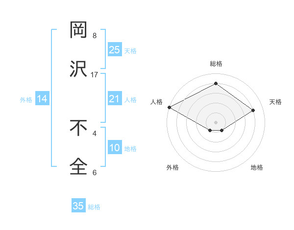 岡沢 不全さんを姓名の画数から五運を鑑定
