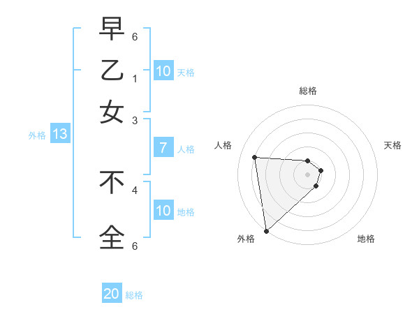 早乙女 不全さんを姓名の画数から五運を鑑定