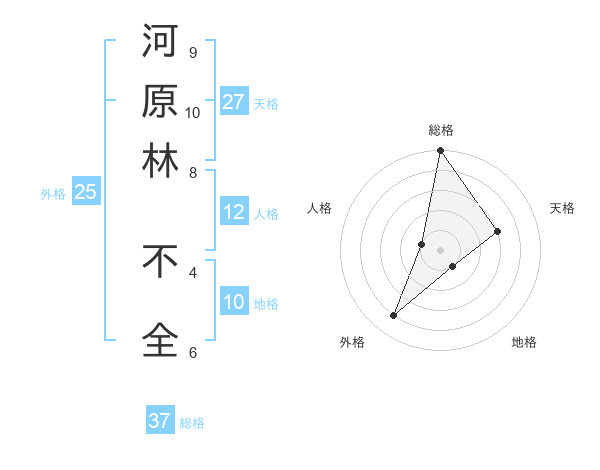 占い結果は姓名判断である以上、良い場合も悪い場合もありますが、決してお名前を誹謗中傷するものでなく、画数の自動計算によって得られたものです。また、本サイトの検索によって得られた鑑定結果で、第三者を誹謗中傷したり名誉を棄損するような行為を禁じます。