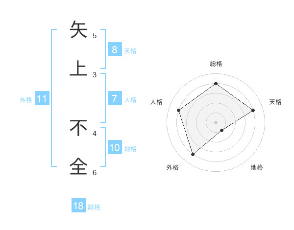 矢上 不全さんの総格は18画の4点!