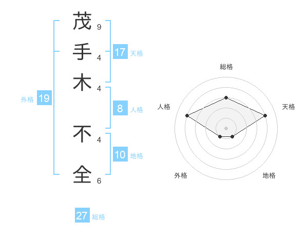 茂手木 不全さんを姓名の画数から五運を鑑定