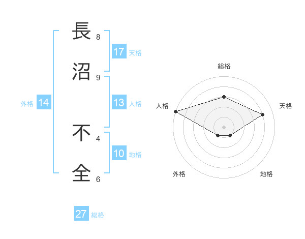 長沼 不全さんの天格は17画の4点!