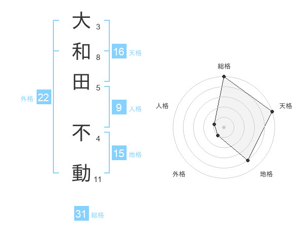 大和田 不動さんの総格は31画の5点!