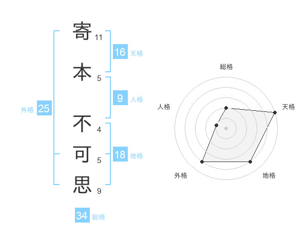 寄本 不可思さんの総格は34画の2点!